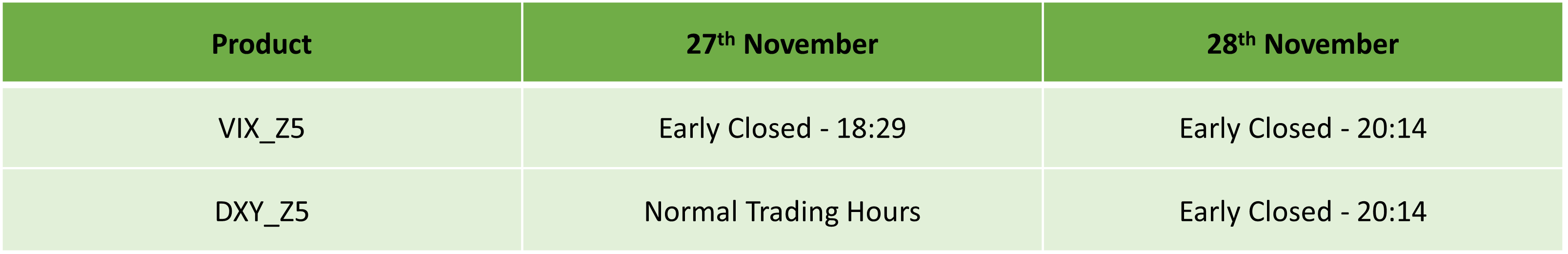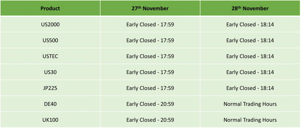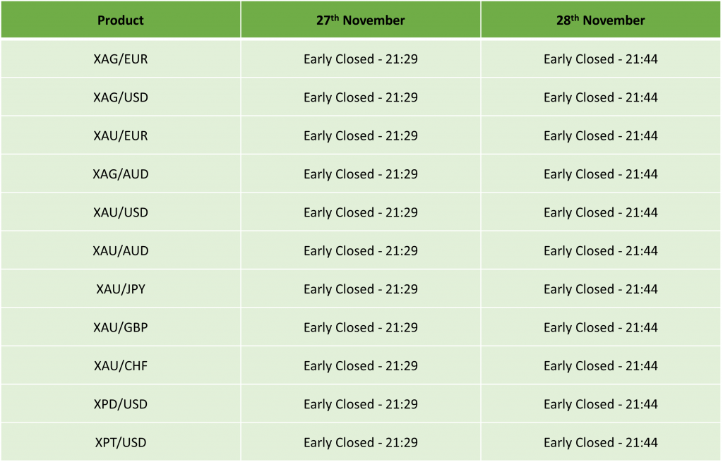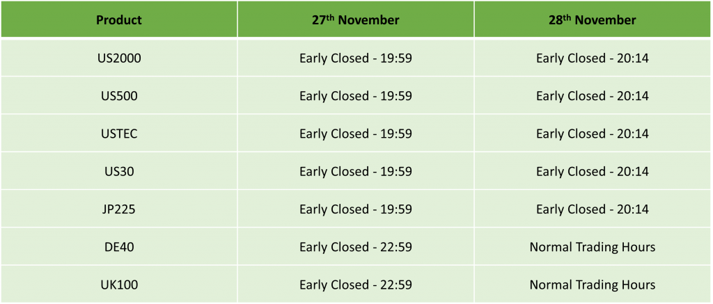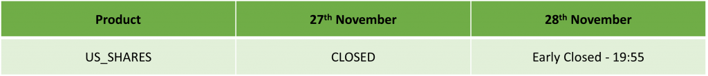 Please find our updated Trading schedule and general information related to the US Thanksgiving Day on Thursday, 27 November, 2025 and Friday, 28 November, 2025.