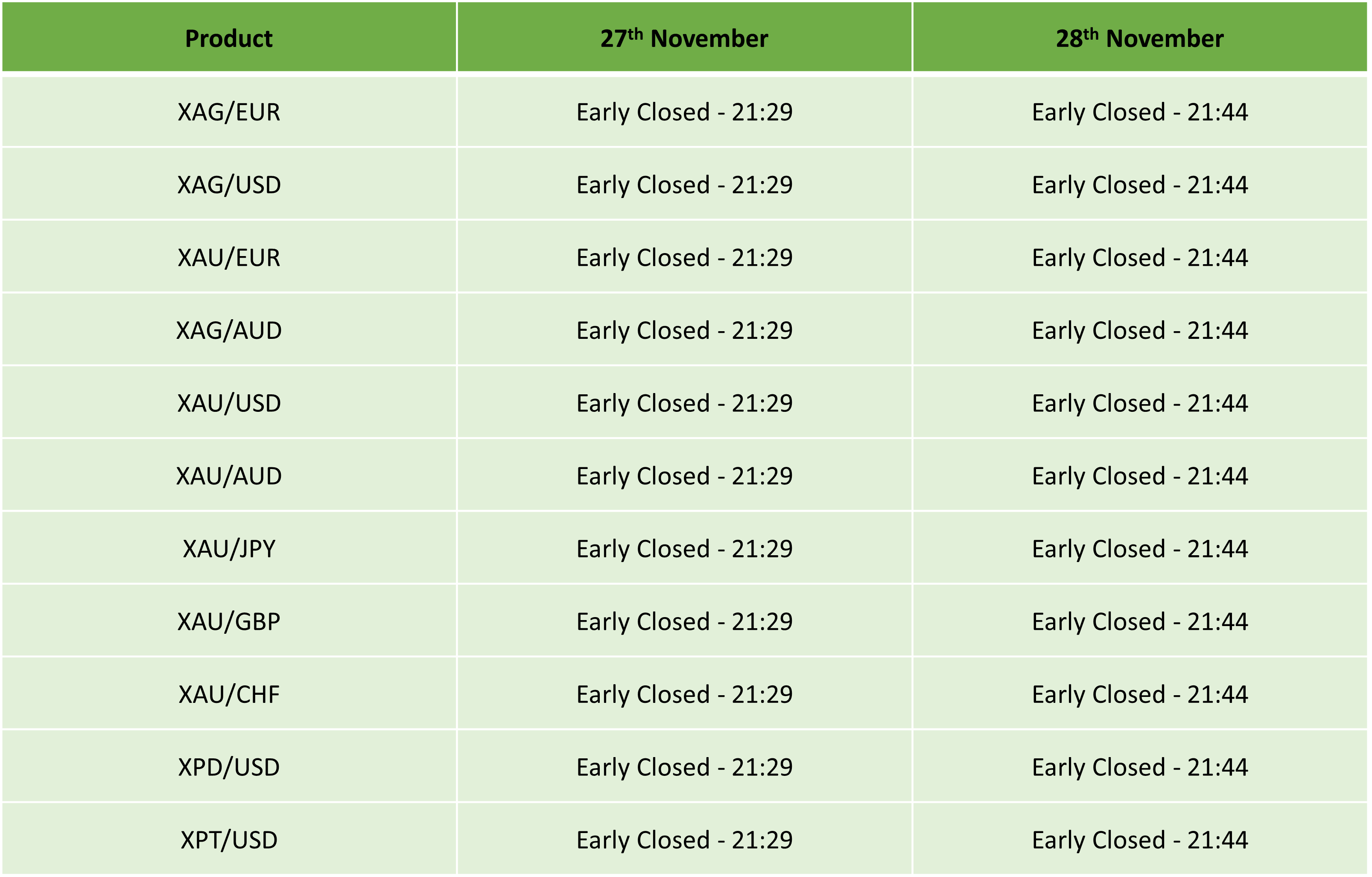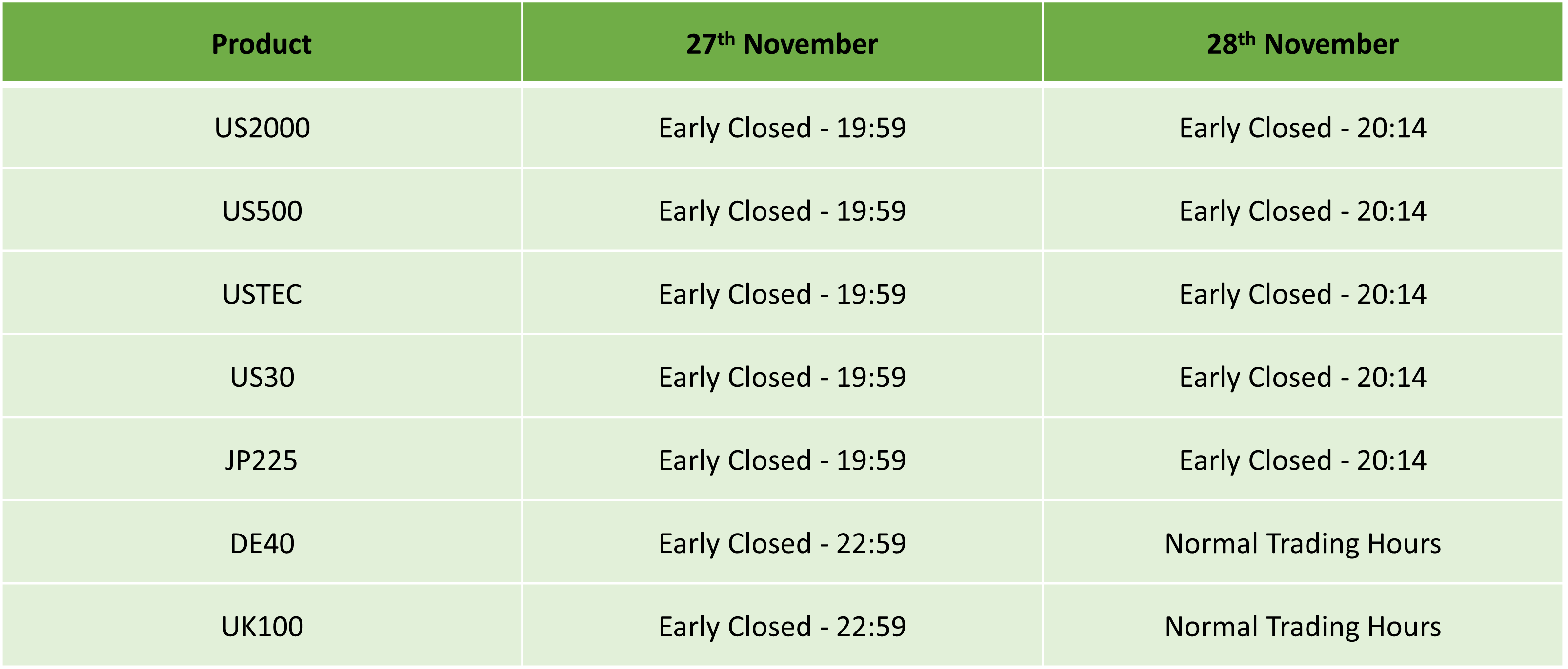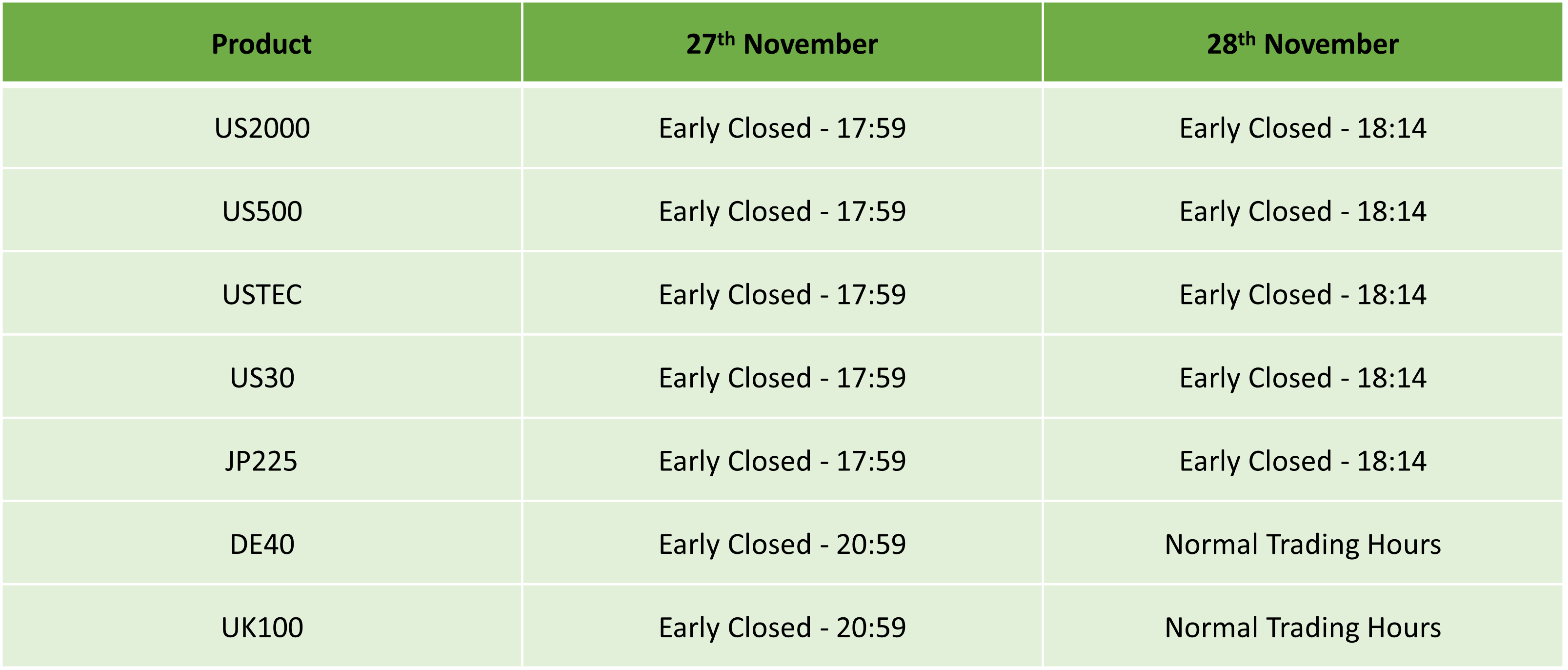 Please find our updated Trading schedule and general information related to the US Thanksgiving Day on Thursday, 27 November, 2025 and Friday, 28 November, 2025.