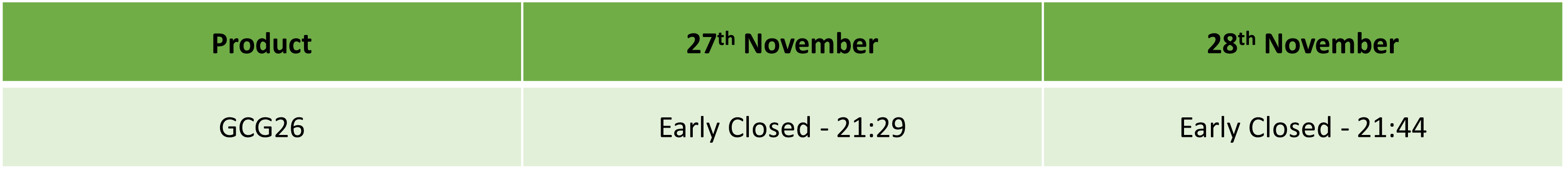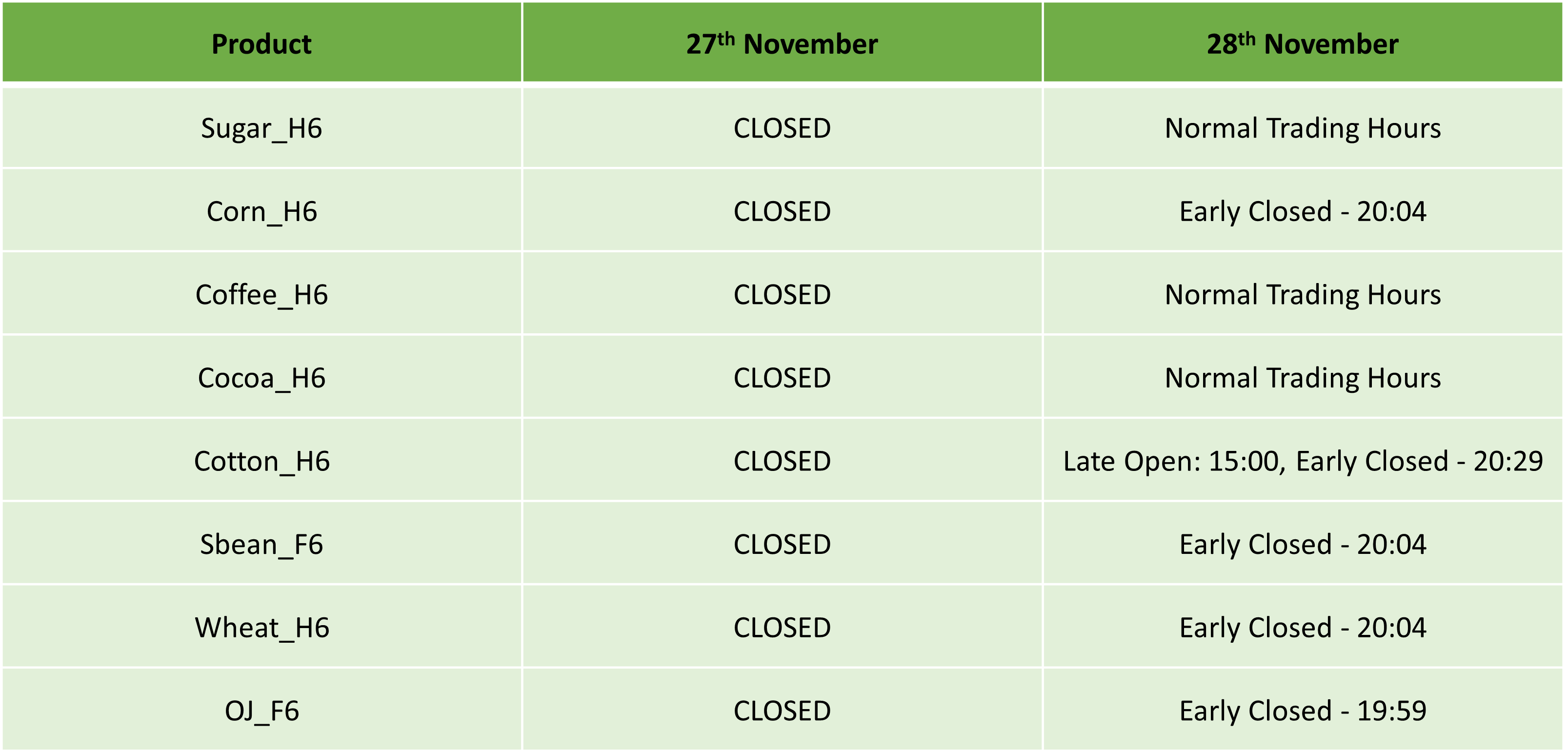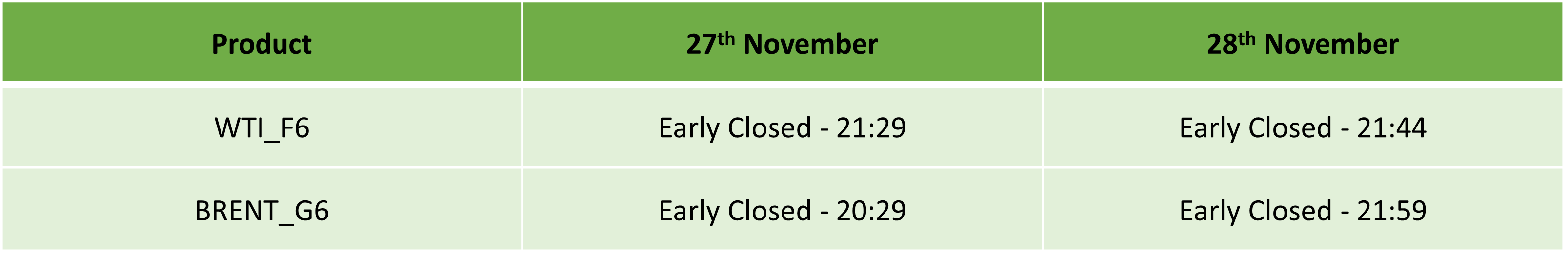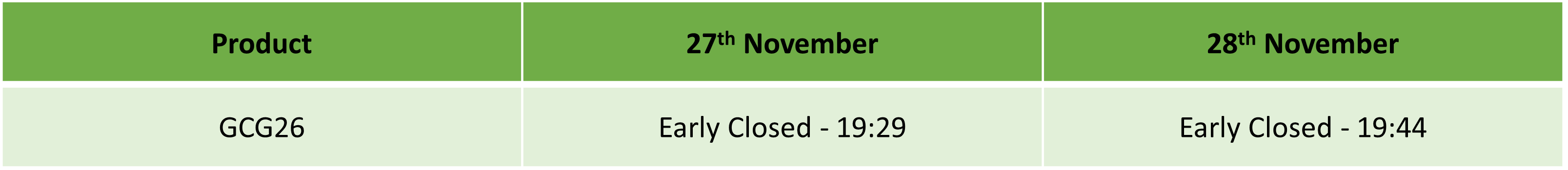Liquidity over the holidays is expected to be particularly thin so please take the necessary precaution to ensure that you are not affected by increased volatility, spreads and intermittent pricing.