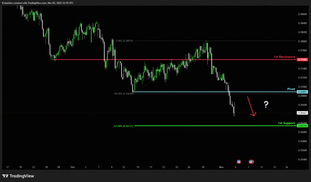 Persistent weakness in China’s manufacturing sector is affecting New Zealand’s largest export market, policy divergence with other central banks (RBA holding steady while RBNZ continues cutting), and technical deterioration with NZD/USD approaching critical support at 0.5685. US Dollar strength ahead of key employment data, six consecutive dairy auction declines totaling -10%+ since August, and upcoming RBNZ press conference with markets pricing 90% chance of another 25bp cut on November 26.