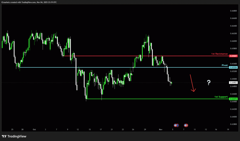 The Australian dollar faces headwinds from multiple directions on November 4, 2025. The RBA’s decision to hold rates amid stubborn inflation has delayed rate cut expectations to 2026, while the Fed’s cautious stance on further easing has strengthened the USD. Despite positive developments in US-China trade relations and resilient commodity prices, the AUD continues its fifth consecutive day of losses, trading near 0.6495.