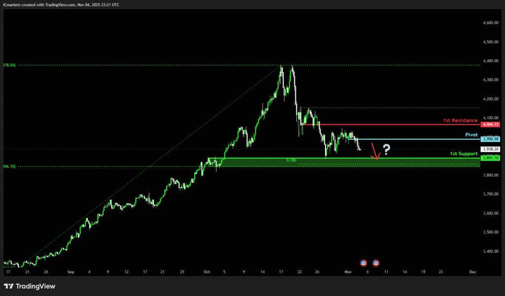 The RBA’s hawkish hold on rates at 3.6% amid higher-than-expected inflation created volatility in AUD pairs, with the currency showing resilience despite Fed headwinds. Traded near two-week lows ahead of critical Q3 employment data, with expectations of rising unemployment reinforcing dovish RBNZ expectations. Weaker manufacturing PMI data weighed on sentiment, though markets remained relatively stable above key support levels . Gold Fell below $4,000/oz on a stronger US dollar and reduced Fed easing expectations, compounded by China’s tax policy changes.