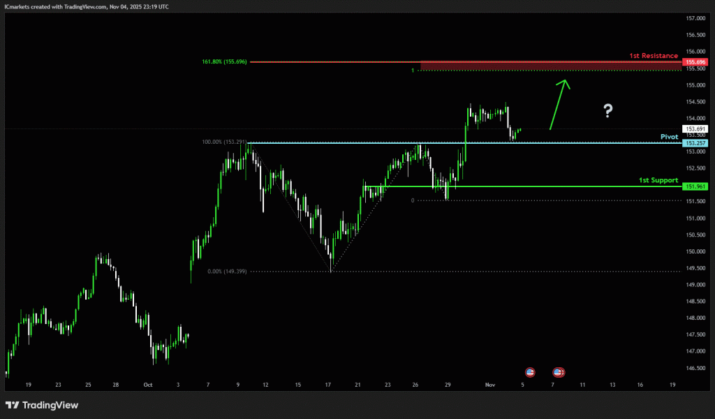 The Japanese yen remains under significant pressure as it trades near eight-month lows around 154.00-154.20 against the dollar on Tuesday, November 4. The BOJ’s continued dovish stance, despite two dissenting votes for a rate hike and accelerating Tokyo inflation, reflects Governor Ueda’s cautious approach amid global trade uncertainties. Prime Minister Takaichi’s massive fiscal stimulus plans further dampen rate hike expectations, while the policy divergence with a hawkish Federal Reserve continues to support USD/JPY carry trades.