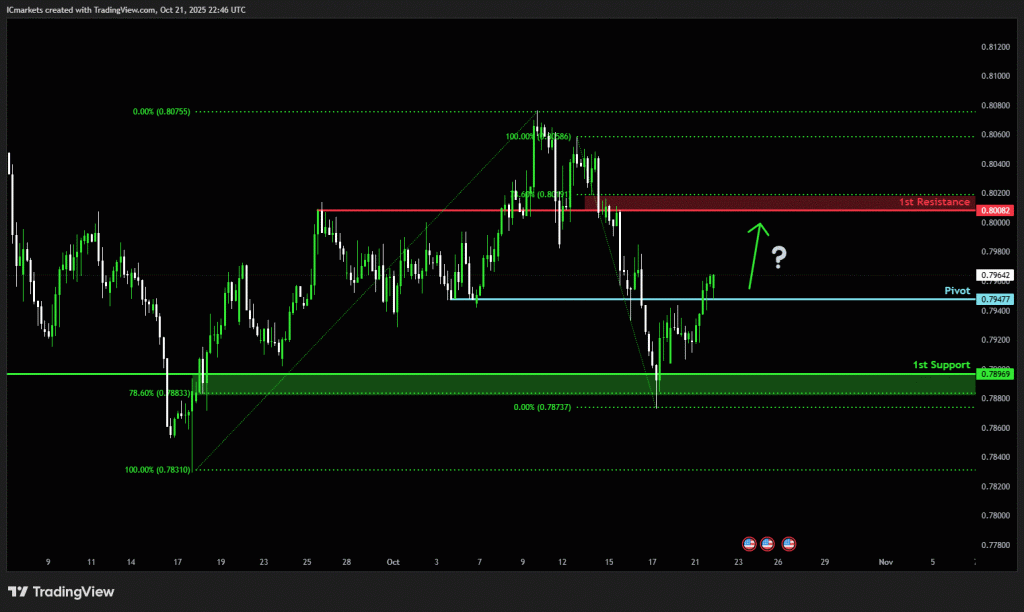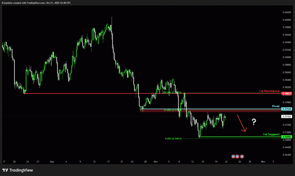 The NZD recovered slightly to about 0.574 USD on Monday after losing ground earlier in October, supported by in-line inflation data showing consumer prices rose 3% in Q3—exactly at the top of the RBNZ’s target band. While the data indicated some sticky inflation, underlying measures remain subdued, which gives policymakers room to continue easing in November.