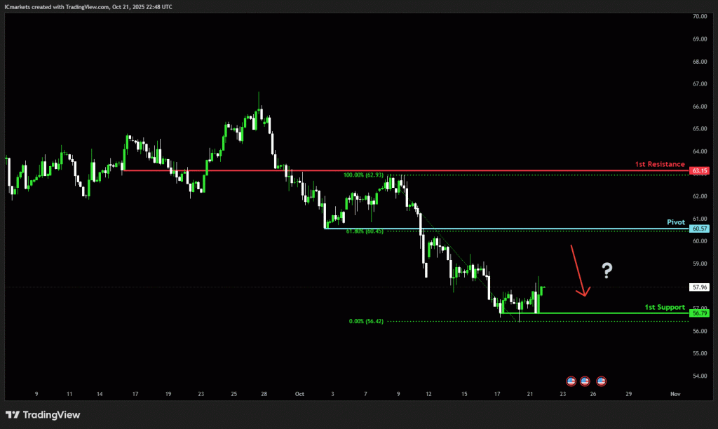 Oil markets are dominated by oversupply fears, weak demand, and trade friction, pushing Brent to roughly $60.70 and WTI to $57.20 per barrel. The near‑term outlook remains bearish, with traders awaiting the API crude inventory data later today and upcoming Federal Reserve speeches for fresh demand‑side cues. Trade tensions between the United States and China have re‑emerged after Washington reinstated tariffs on select Chinese imports and imposed sanctions on key commodities.