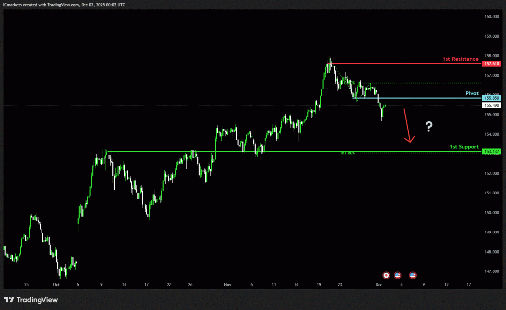 The market still sees December as a seasonally soft month for USD/JPY, and the pair has already broken a prior bullish trendline, so any renewed risk‑off or stronger BOJ signals could trigger deeper yen gains toward the low‑150s.