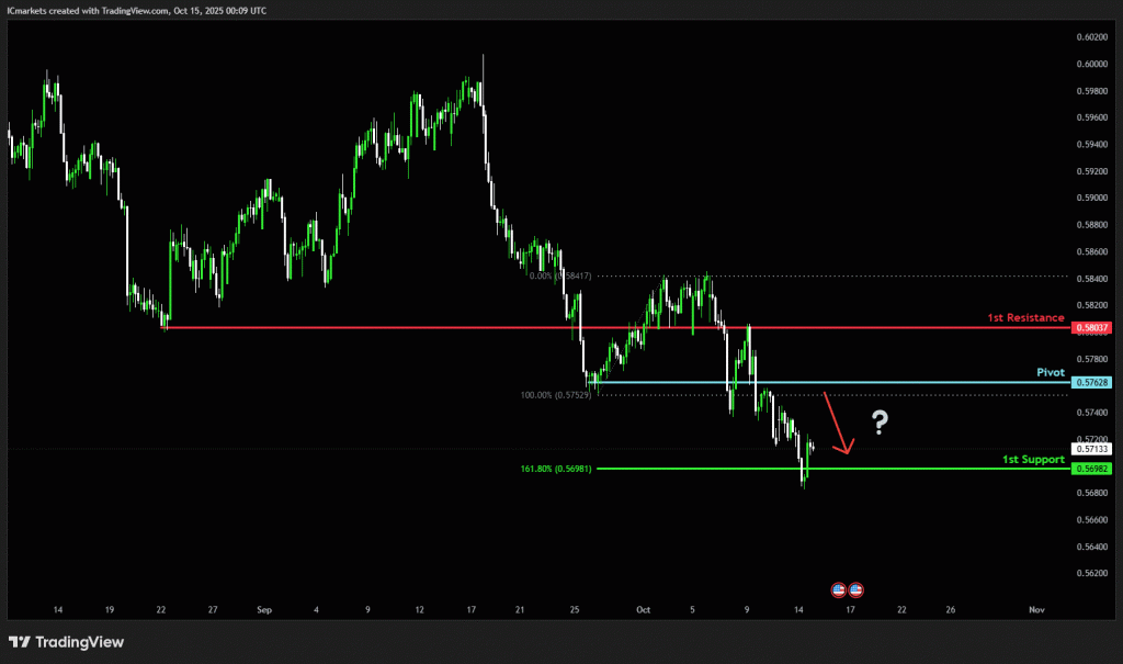 The New Zealand Dollar faces a perfect storm of negative factors. The RBNZ’s aggressive easing cycle, with further cuts anticipated, renewed US-China trade tensions threatening New Zealand’s export-dependent economy, weak domestic economic data showing contraction across multiple quarters, and declining dairy prices undermining a key export sector. With the currency trading near six-month lows around 0.5700 against the USD, market participants remain cautious ahead of potential further weakness, particularly if the RBNZ follows through with another rate cut in November and trade tensions continue to escalate.