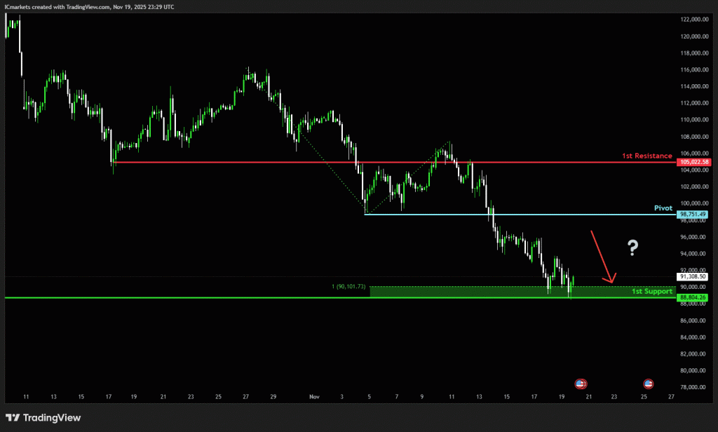 Bitcoin continued its move lower as it fell $-3400 or -3.72% and $89,453