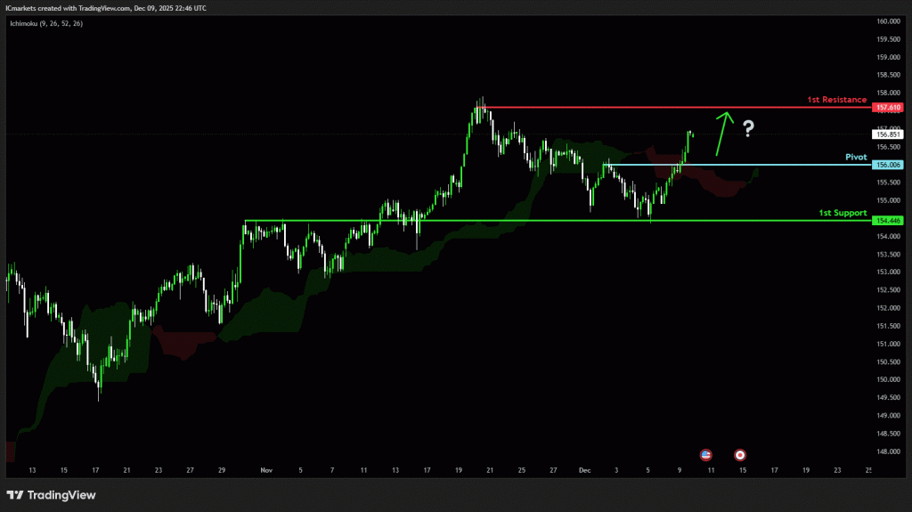 The Japanese yen is trading weaker near recent lows as markets wait for fresh confirmation of a Bank of Japan rate hike later in December, with USD/JPY around the mid‑156 area and volatility driven mainly by shifting expectations for U.S.–Japan yield differentials. USD/JPY has edged higher toward about 156.9 as of December 9–10, reflecting renewed dollar strength and modest selling of the yen after its brief recovery earlier this month.