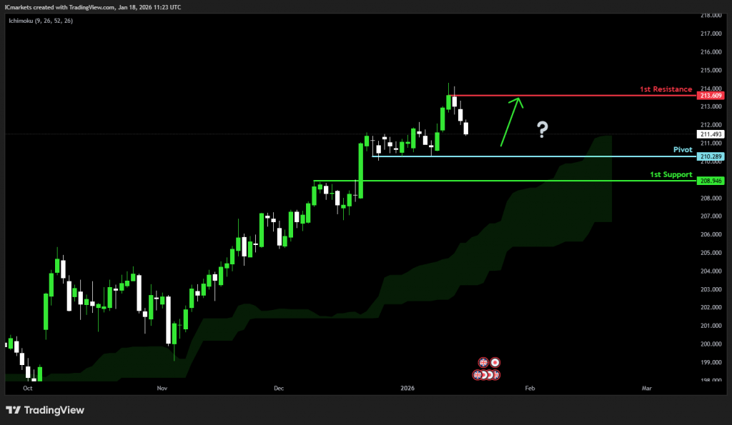 Attention remains firmly on the US Federal Reserve meeting scheduled for January 27–28. According to CME Group’s FedWatch Tool, markets are pricing in a 95 percent probability that interest rates will be left unchanged, reflecting expectations of a prolonged pause in monetary tightening.