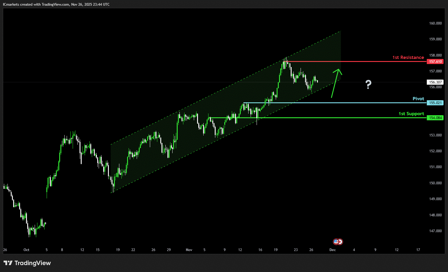 USD/JPY has slipped toward roughly 156.0, close to a one‑week low after sellers emerged on growing expectations that the Bank of Japan could move further away from ultra‑easy policy while the U.S. The Federal Reserve is seen pivoting to rate cuts in 2026. The current level keeps the yen in a zone where traders remain alert for possible Ministry of Finance intervention if depreciation accelerates again, given past warnings around the 157–160 range.