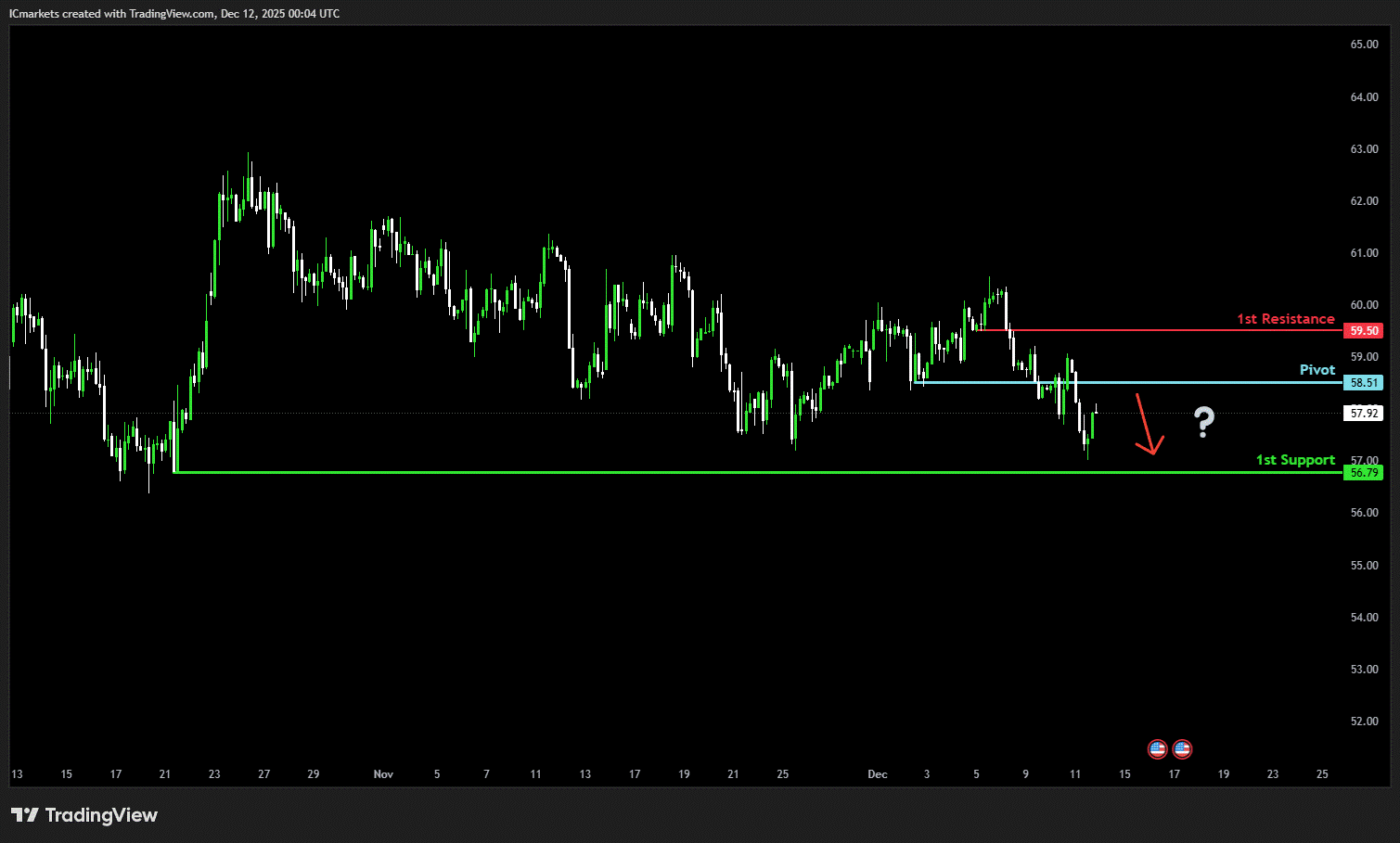 Oil markets are trading slightly lower, with WTI in the high‑50s and Brent a little above 62 USD per barrel, extending a recent downtrend that has left both benchmarks well below year‑ago levels. OPEC and OPEC+ have left their 2025–2026 demand growth forecasts unchanged while production from core members and US producers stays high, reinforcing fears of a mild surplus. Geopolitical tensions from US actions against sanctioned Venezuelan barrels to disruptions involving Russian‑linked tankers have injected brief support, but risk‑off sentiment in broader markets and concerns about oversupply continue to outweigh these factors, keeping crude under pressure.