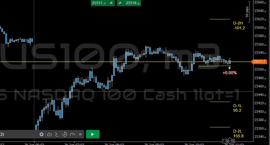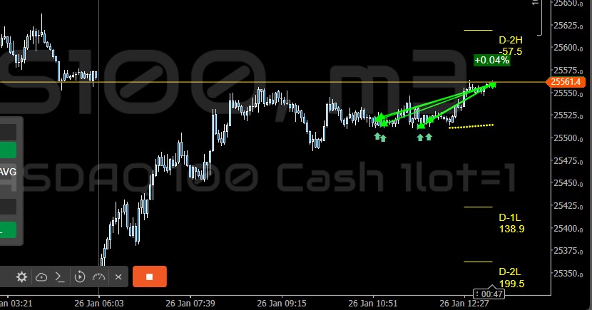 13:00 closing NQ at Friday’s rollover price as the full hour approaches (extended target is around 25679)